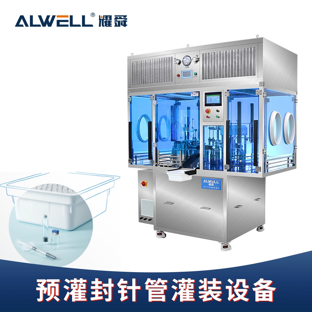 重组人源蛋白注射器灌装机,该设备是我司专门针对各种预充式注射器设计的自动化高速无菌灌装生产线,能实现全自动上管、离心式理管,硅化、加塞、灌装、旋帽,且可对接灯检、灭菌摆盘、加杆、贴标、检重、枕式包装机等组成全自动流水线。整机伺服控制,结构稳定,适用于多种规格的注射器产品,适用于生理盐水、氯化钠、几丁糖、牙科凝胶等物料的灌装,广泛应用于各种生物制药、牙科等行业。